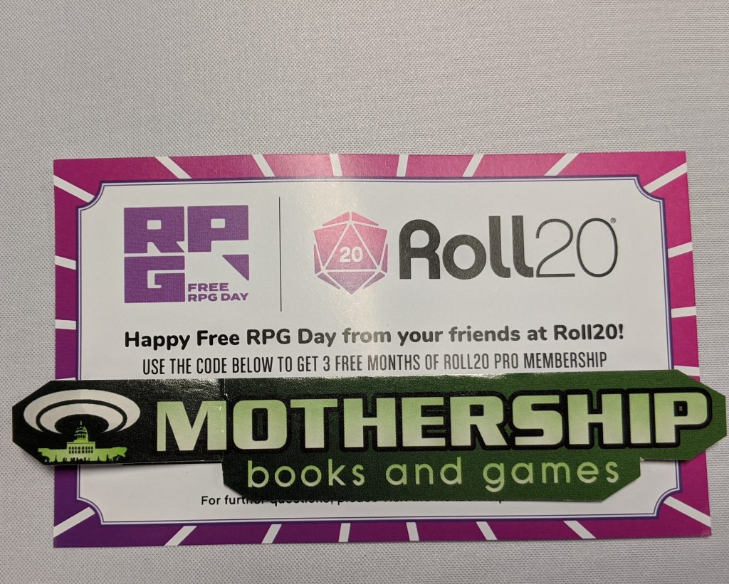 Sorry for the delay here! Things got pushed back, shipments delayed, and we just didn’t want to post anything until we had the Free RPG Day stuff on site!